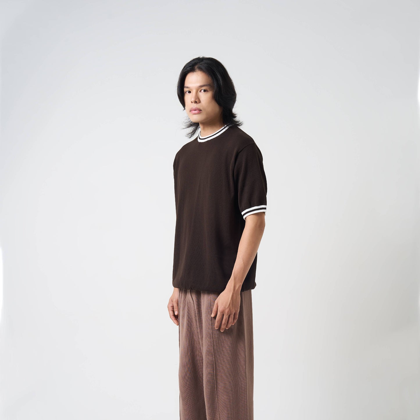 Berlin O Neck Espresso Striped Collar